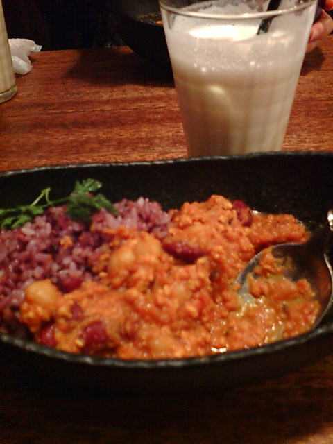 豆カレーとラッシーを食べるだけ食べ、